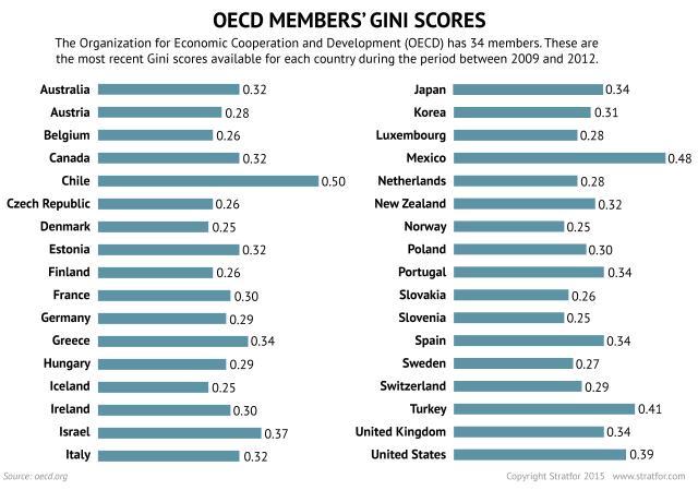 Like the farming and foraging civilizations before it, our fossil fuel world has an equilibrium point — a "right" level of inequality — and societies that move toward this optimum balance will flourish while those that move away from it will not. The most successful governments often recognize this, using progressive taxation and other fiscal transfers to push economic inequality toward what they hope is the sweet spot. For example, the member states of the Organization for Economic Cooperation and Development drove post-tax income inequality down into hunter-gatherer territory by 1970, reaching an average Gini coefficient of 0.26, but economic difficulties and voters' rightward shift in the following decades suggest that this may have been too low. By 2012, the bloc's average post-tax income inequality had drifted back up to 0.31, and new waves of economic difficulty and public anger are now suggesting that this level is too high.